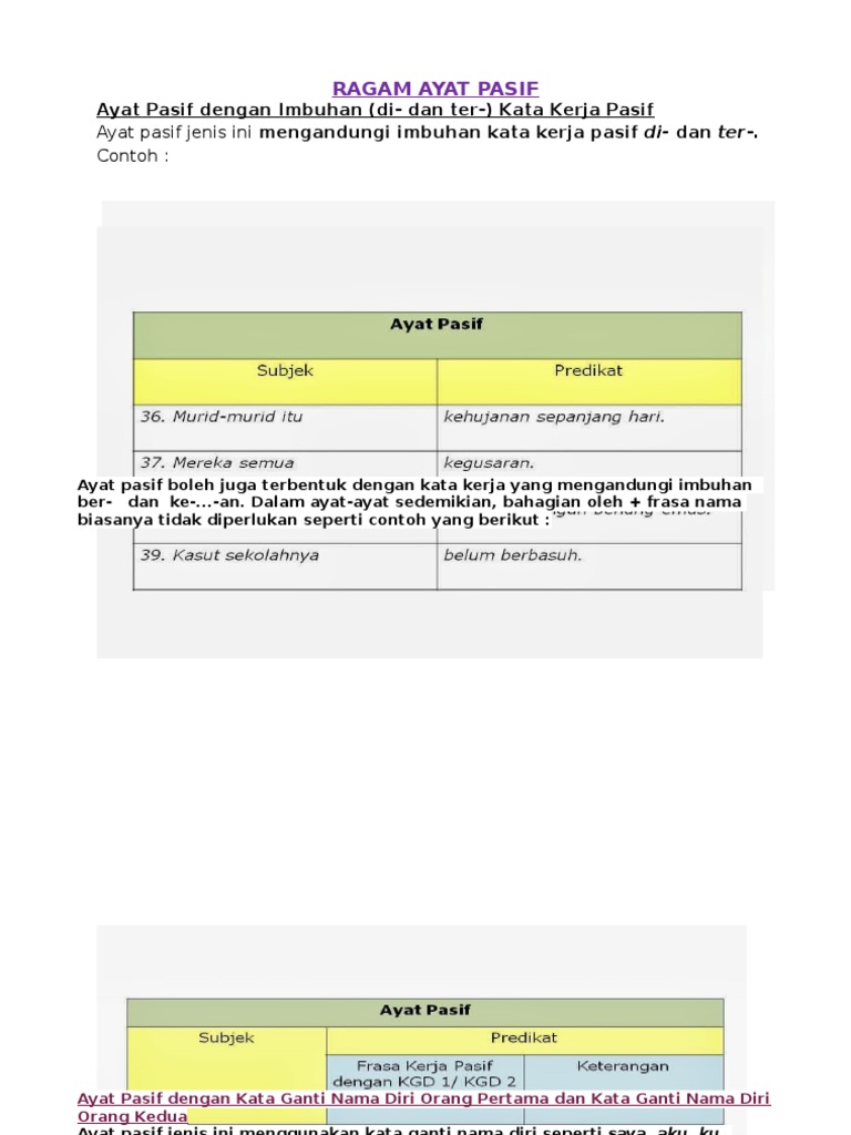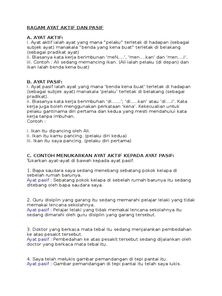 Ragam Ayat Pasif Beserta Contoh Pdf